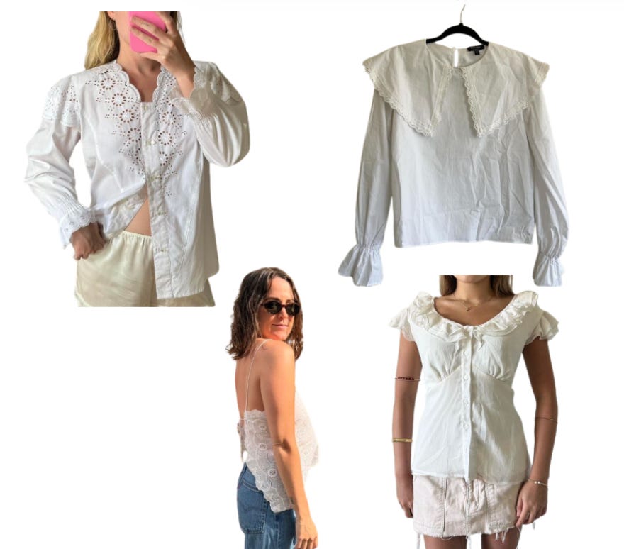 Nothing screams summer more than a white linen or cotton top. I love this button down with the eyelet detail ($20), and this handmade backless tank ($40) would be perfect for a night out. I also love a statement collar—this peter pan long sleeve ($20) would look great with a pair of shorts and you could wear this ruffle number ($20) dressed up or down.